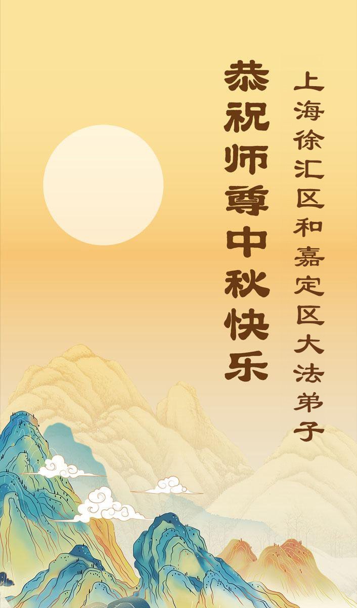 ผู้ฝึกฝ่าหลุนต้าฝ่าในเซี่ยงไฮ้ขออวยพรท่านอาจารย์ที่เคารพเนื่องในเทศกาลไหว้พระจันทร์!