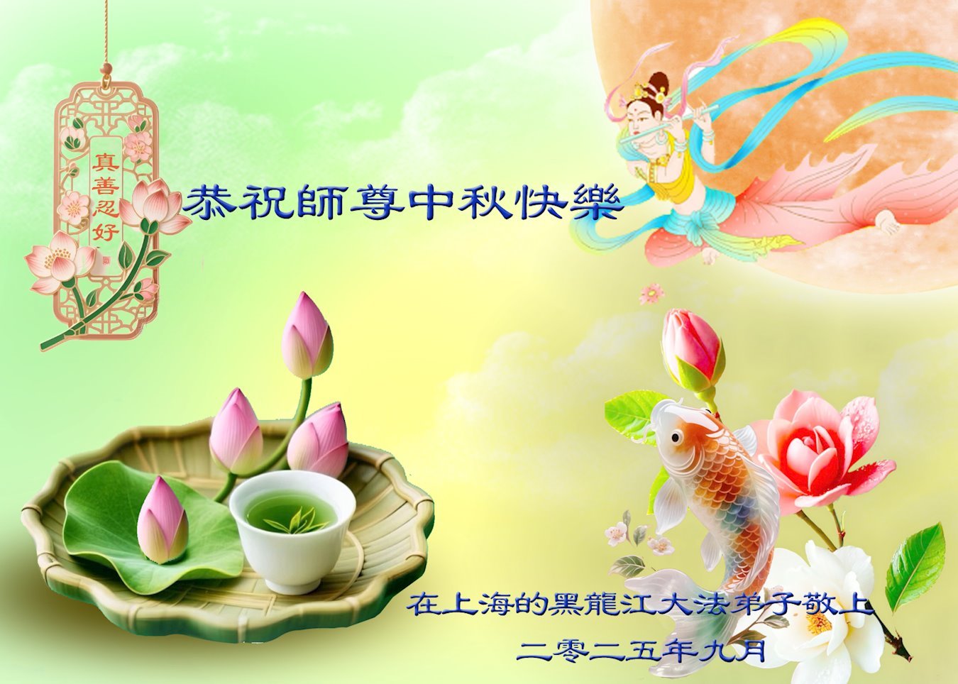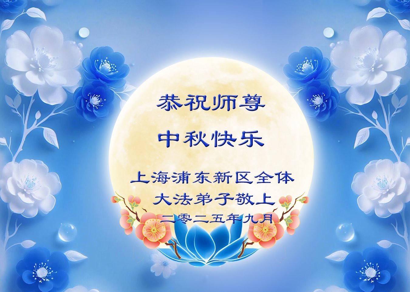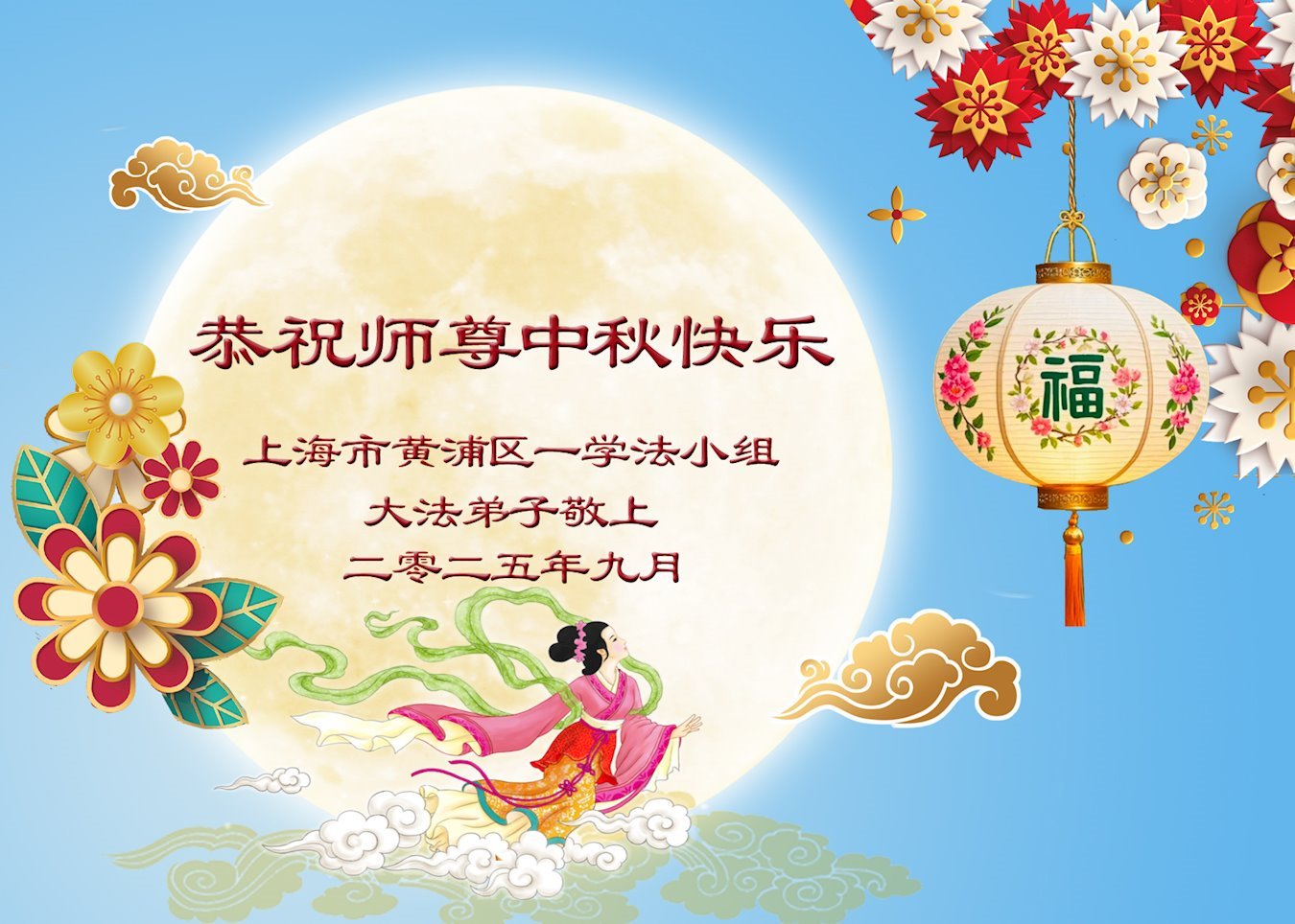 ผู้ฝึกฝ่าหลุนต้าฝ่าจากเซี่ยงไฮ้ขออวยพรท่านอาจารย์หลี่หงจื้อที่เคารพเนื่องในเทศกาลไหว้พระจันทร์ (18 คําอวยพร) 2 ตุลาคม 2025