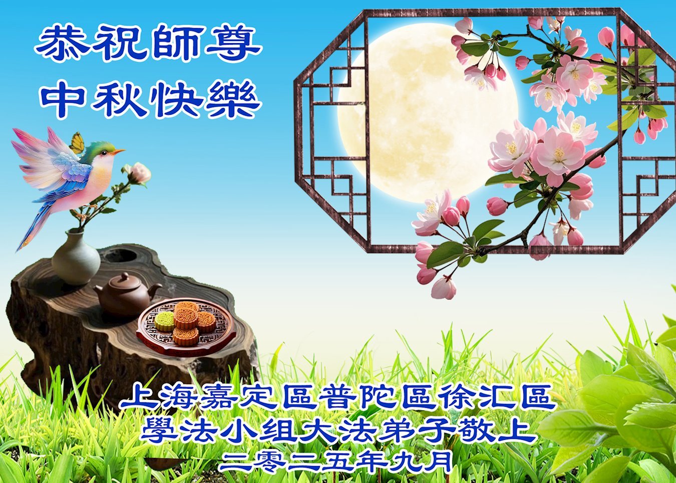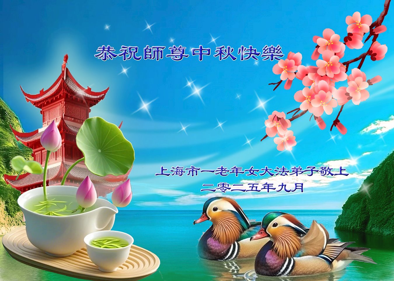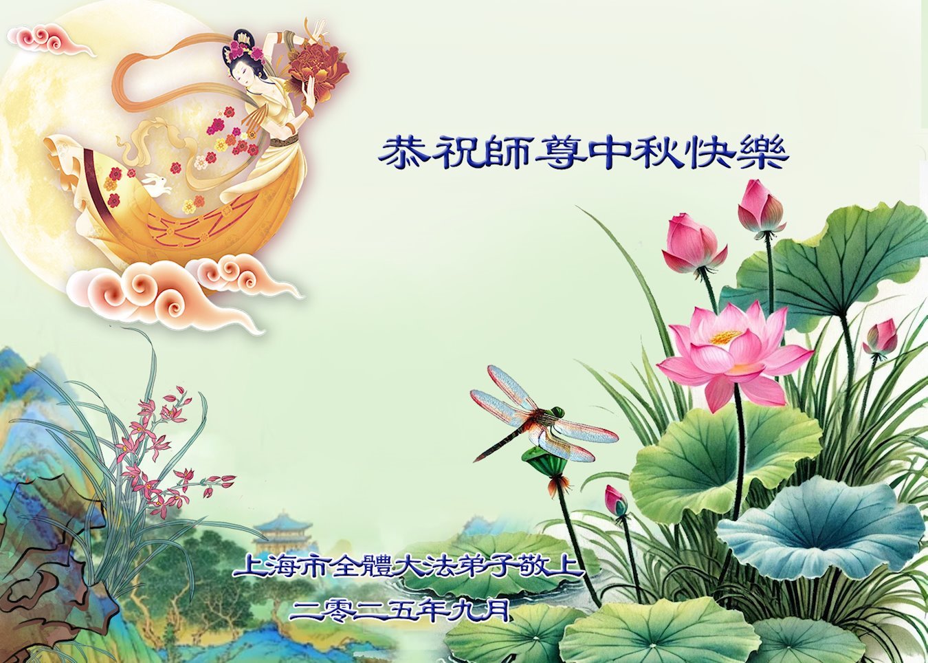 ผู้ฝึกฝ่าหลุนต้าฝ่าจากเซี่ยงไฮ้ขออวยพรท่านอาจารย์หลี่หงจื้อที่เคารพเนื่องในเทศกาลไหว้พระจันทร์ (18 คําอวยพร) 2 ตุลาคม 2025
